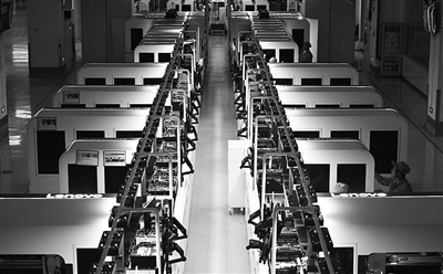 这是联想天津零碳智造工厂笔记本生产线。记者 赵子硕 摄