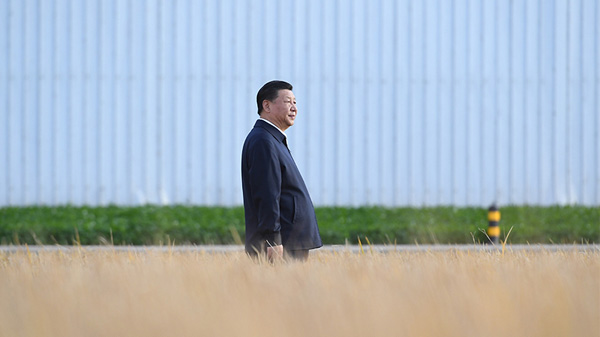 在关键农时,总书记一次次来到田间地头,察看粮食生产,关心丰收情况。